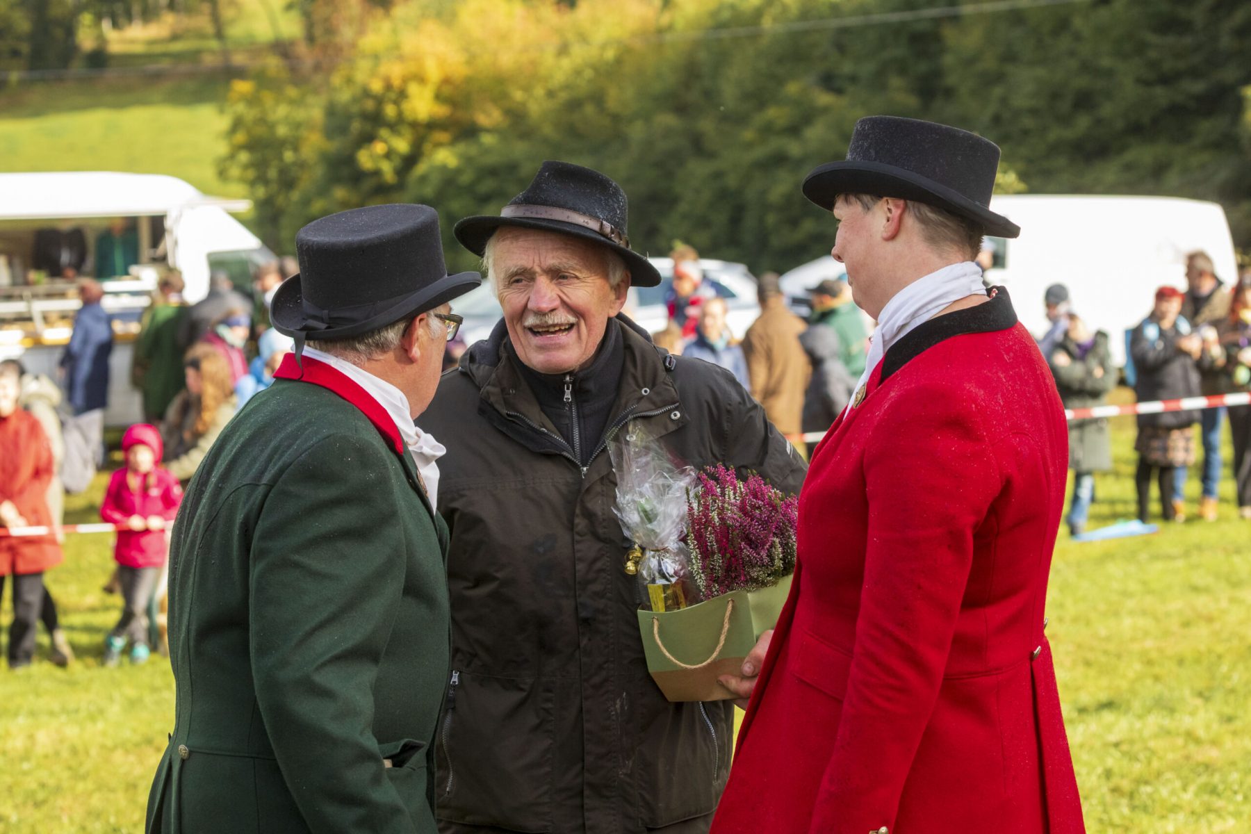 Es gab in diesem Jahr bei der finalen Vorbereitung einige Hürden zu meistern, das Wetter war nur eine davon. Mehrfach kam die Frage auf, warum man die Veranstaltung nicht in den Sommer verlege. Diese Frage lässt sich mit der Historie der Fuchsjagd beantworten, die ihren Ursprung in England hat und bis ins 16. Jahrhundert zurückreicht. Die Jagd findet im Herbst statt, weil dann z. B. die Felder abgeerntet sind.