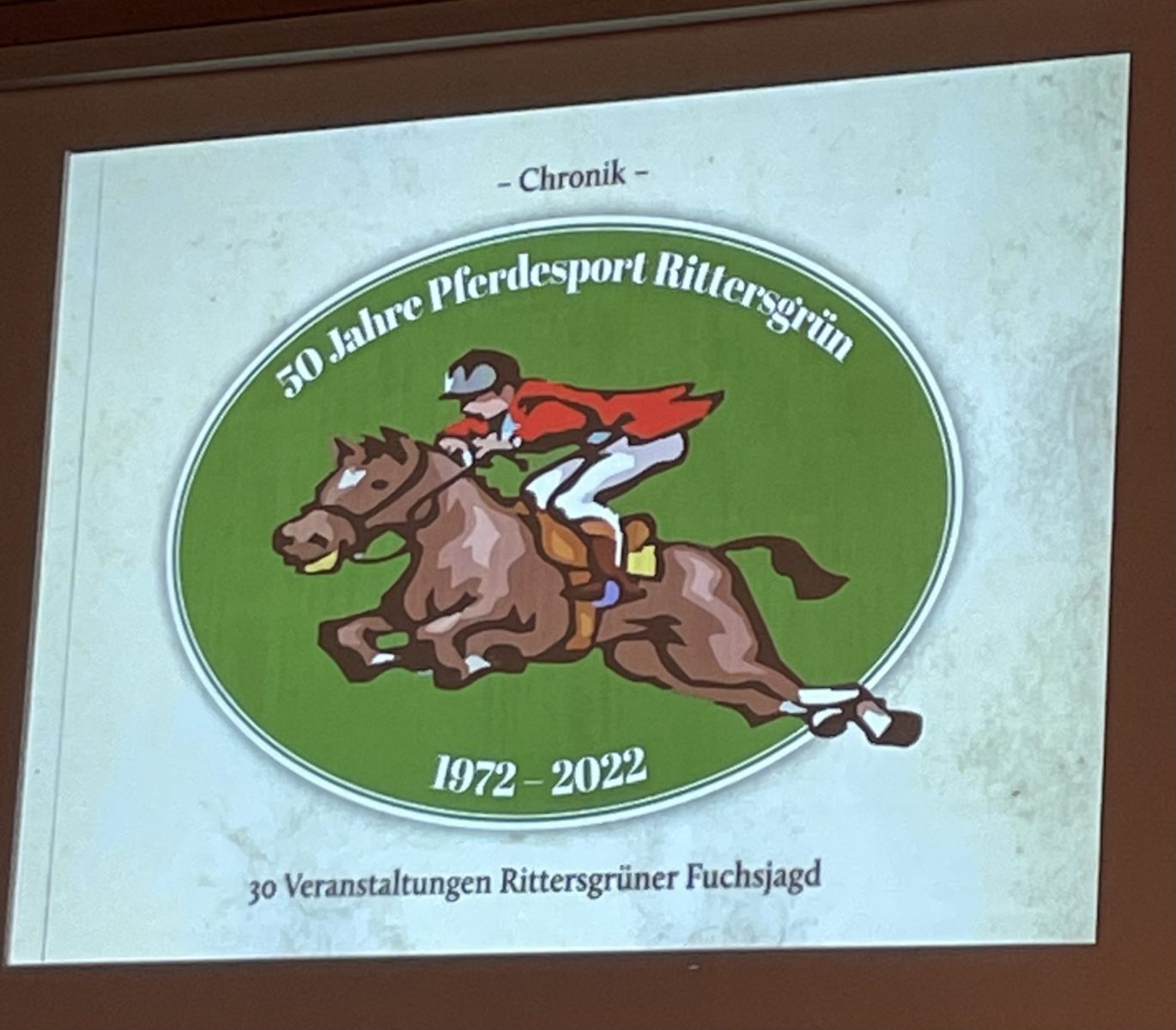 Ein ganzes Wochenende stand in Rittersgrün im Zeichen des Pferdesports – denn es gab gleich zwei Jubiläen zu feiern. Auftakt bildete die Festveranstaltung „50 Jahre Pferdesport in Rittersgrün“ am 1. Oktober. Zur Abendveranstaltung in die herbstlich geschmückte Mehrzweckhalle kamen rund 200 geladene Gäste. Musikalisch umrahmt vom Posaunenchor Rittersgrün stand die Vorstellung der Chronik im Mittelpunkt. Dr. Bernd Hentschel hat die Geschichte(n) des Pferdesports in Rittersgrün von der Gründung der Sektion 1972, über den mühevollen Aufbau der Reitanlage in Grünstädtel und die zahlreich durchgeführten Turniere bis hin zur Gründung des Fördervereins Rittersgrüner Fuchsjagd und dessen Arbeit bis in die Gegenwart auf über 230 Seiten mit unzähligen Fotos dokumentiert. Eine Reise in die Vergangenheit – nicht nur für die Reiter der ersten Stunde unter den Gästen, sondern auch für die nächste Generation in Rittersgrün und Grünstädtel, die auf dem Erreichten aufbauen darf. Dr. Bernd Hentschel und Dietrich Meyer wurden als Gründungsmitglieder der Sektion Pferdesport für ihre Verdienste mit der goldenen Ehrennadel des Kreissportbundes Erzgebirge geehrt.