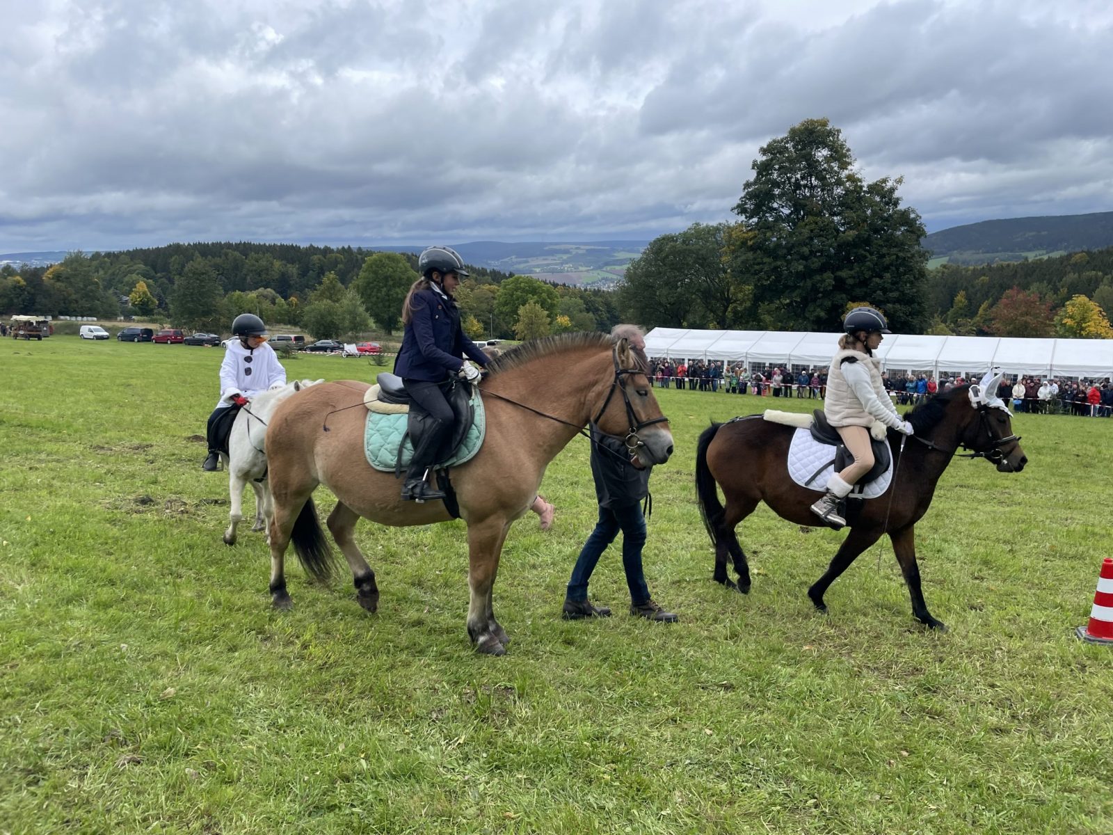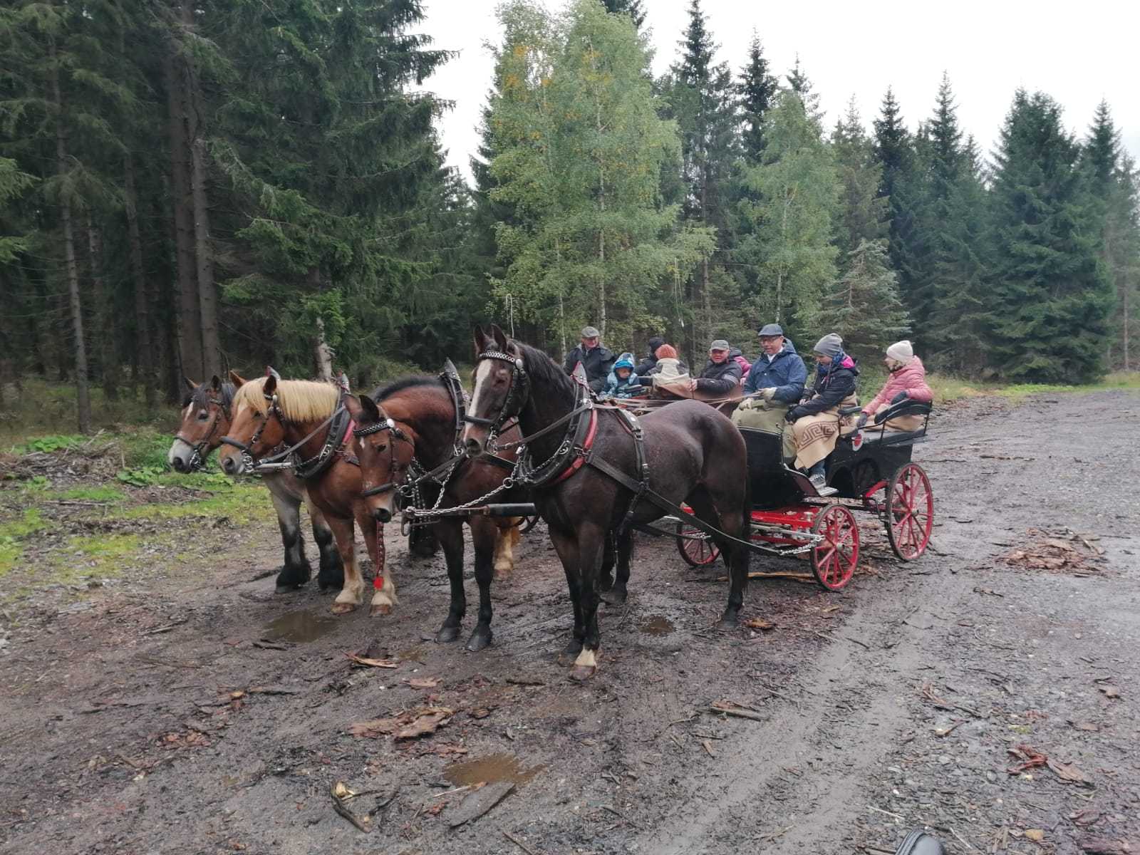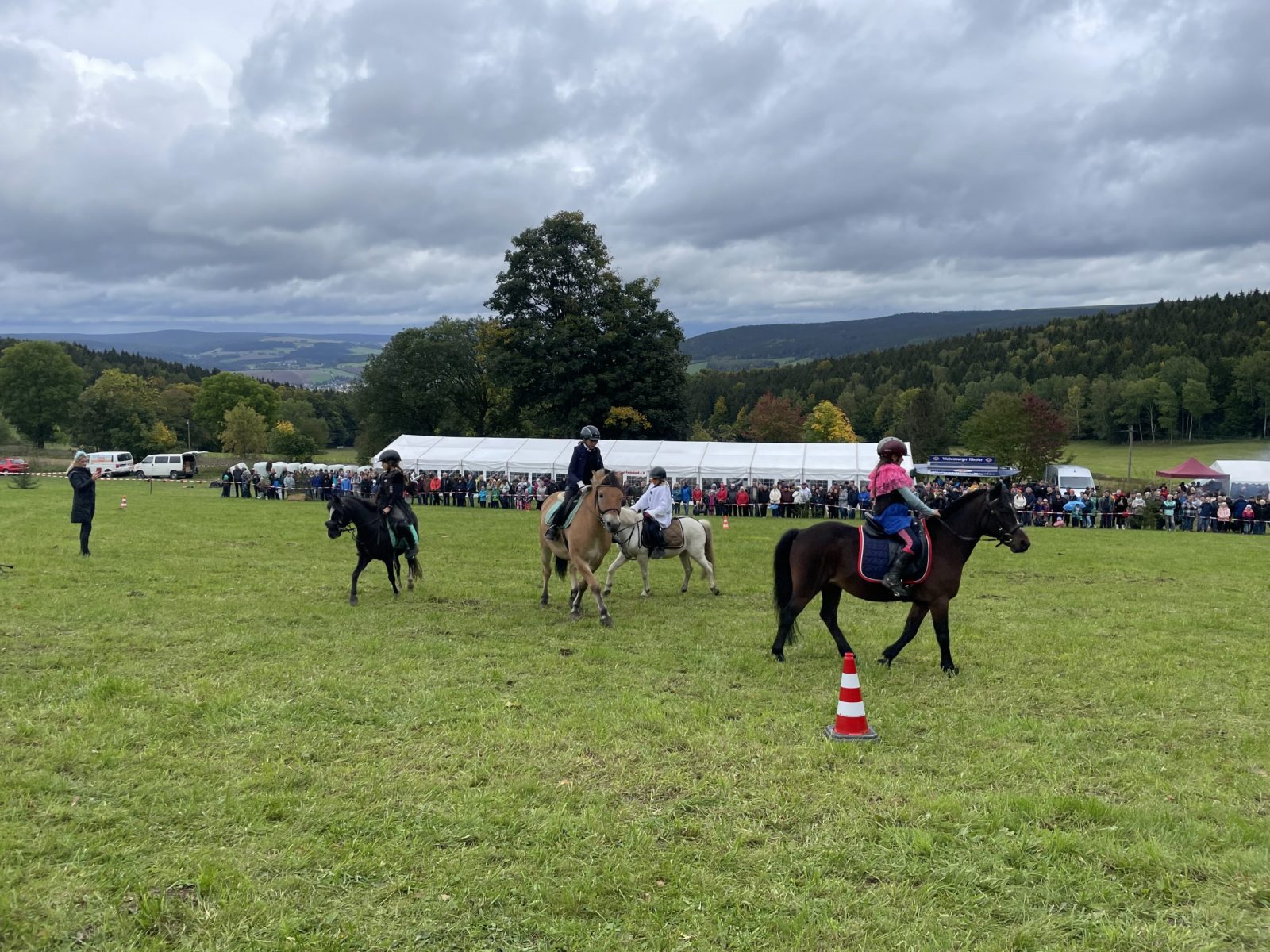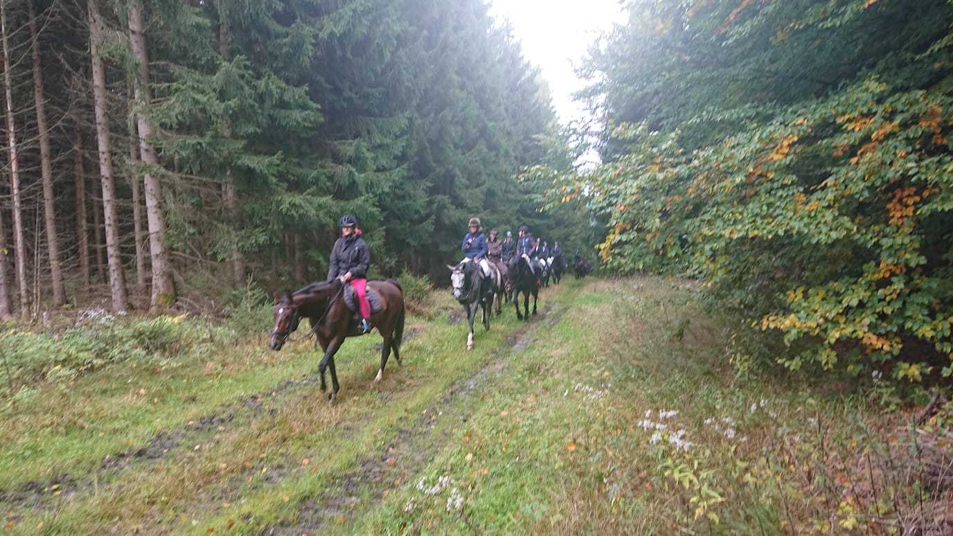 Am 2. Oktober fand dann die 30. Rittersgrüner Fuchsjagd statt. Bereits am Vormittag herrschte bei Zeltgottesdienst und Kinderprogramm reges Treiben auf dem Festgelände. Die Vorbereitungsarbeit des Vereins wurde zur Hauptveranstaltung trotz herbstlich-trübem Wetter durch den Besuch von rund 700 Zuschauern belohnt. Ein schönes Eröffnungsbild gaben die 26 Reiter und einige der insgesamt 13 teilnehmenden Gespanne ab. Als neuer Master führte in diesem Jahr Timm Meyer das Feld der Reiter an, nachdem sein Vater, Dietrich Meyer, ihm das Amt offiziell übertragen hatte. An dieser Stelle gilt unserem „Alt-Master“ nochmals ein herzlicher Dank für seine Verdienste in der Vereinsarbeit. Als Füchsin ritt Helena Lahodná vom Partnerverein Pegas aus Depoltovice. Sie vertrat die Vorjahressiegerin Peggy Lang, deren Pferd sich leider kurz vor der Veranstaltung verletzt hatte.