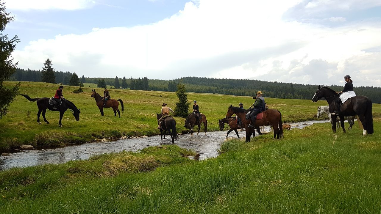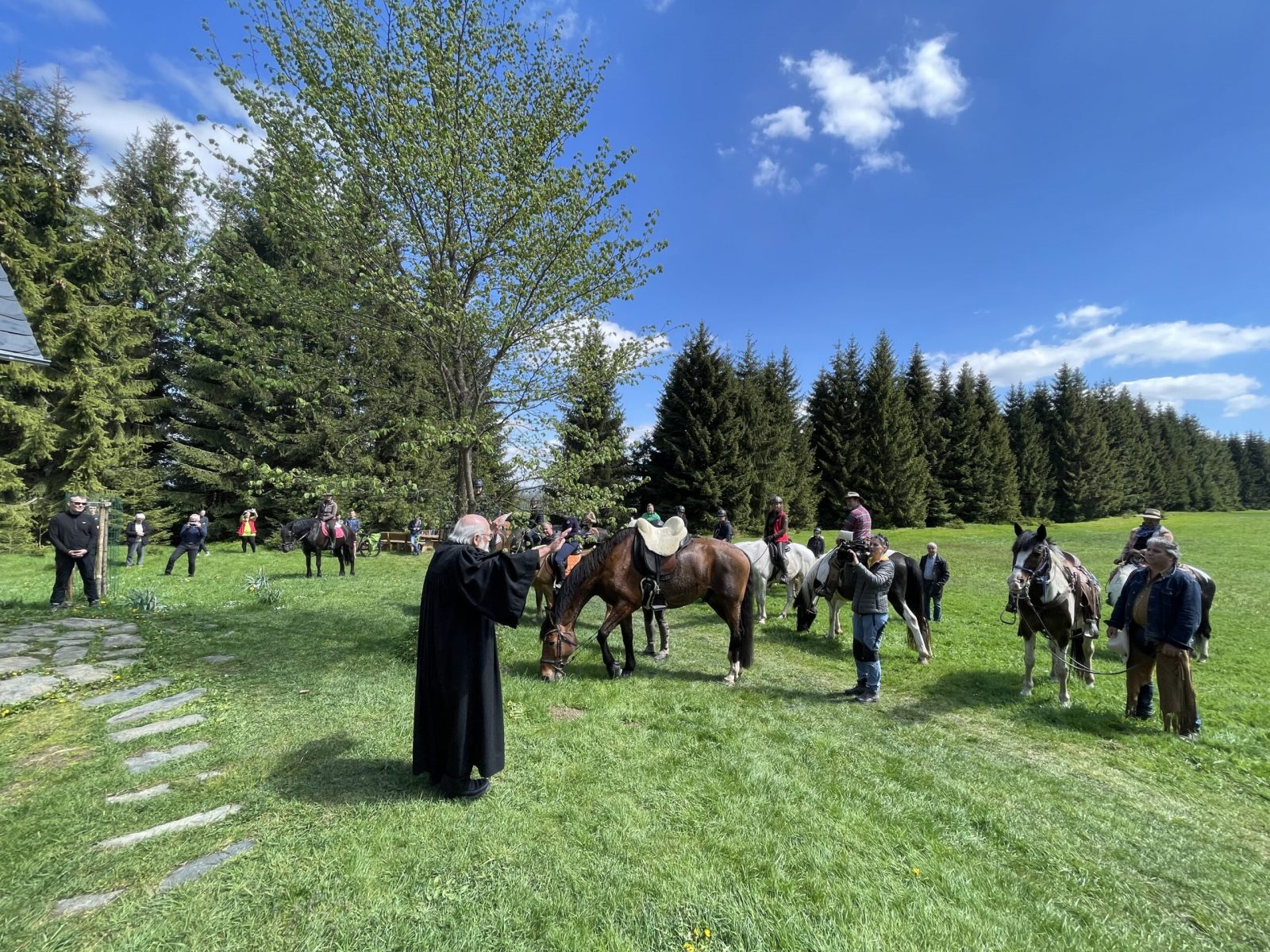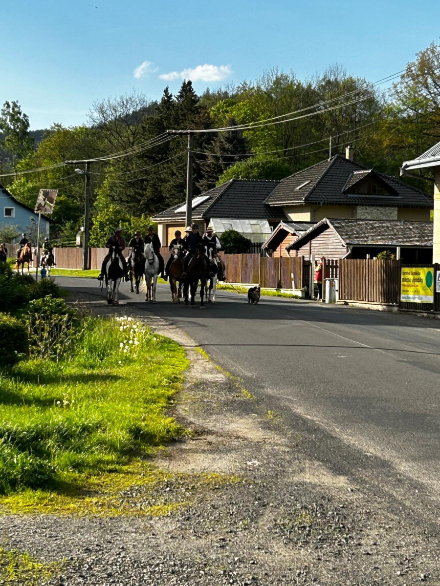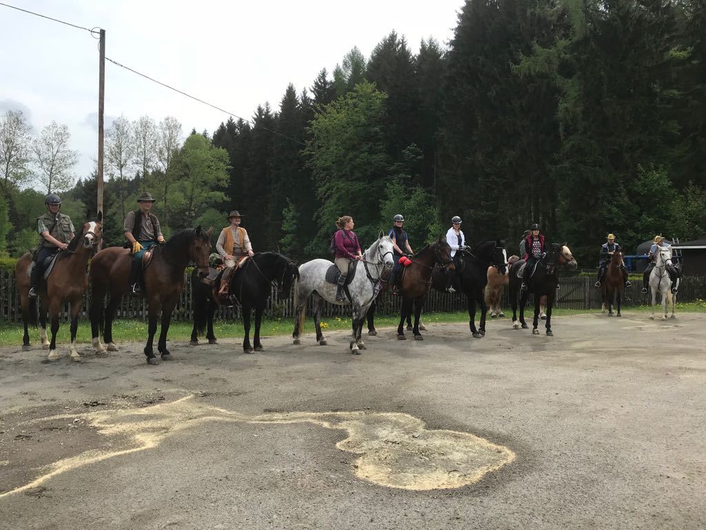 Anlässlich das 15jährigen Bestandsjubiläums durften Reiter, Begleiter und Zuschauer an der St. Nepomuk-Kapelle auf Halbmeil - der ersten Rast auf tschechischer Seite - eine Andacht durch Pfarrer i.R. Beyreuther erleben und sich mit seinem Segen auf den weiteren Weg machen. Bei bestem Frühsommerwetter konnten die Reiter auf ihrer weiteren Route nicht nur die Schönheit der Natur, sondern auch ausgedehnte Gespräche und gutes böhmisches Essen genießen. Am frühen Abend kamen Pferde und Reiter erschöpft aber gesund in Depoltovice an. Im urigen Bierkeller fand das Jubiläum dann seinen geselligen Ausklang bevor es am nächsten Morgen zu Pferd oder mit dem Anhänger zurück in die Heimat ging.